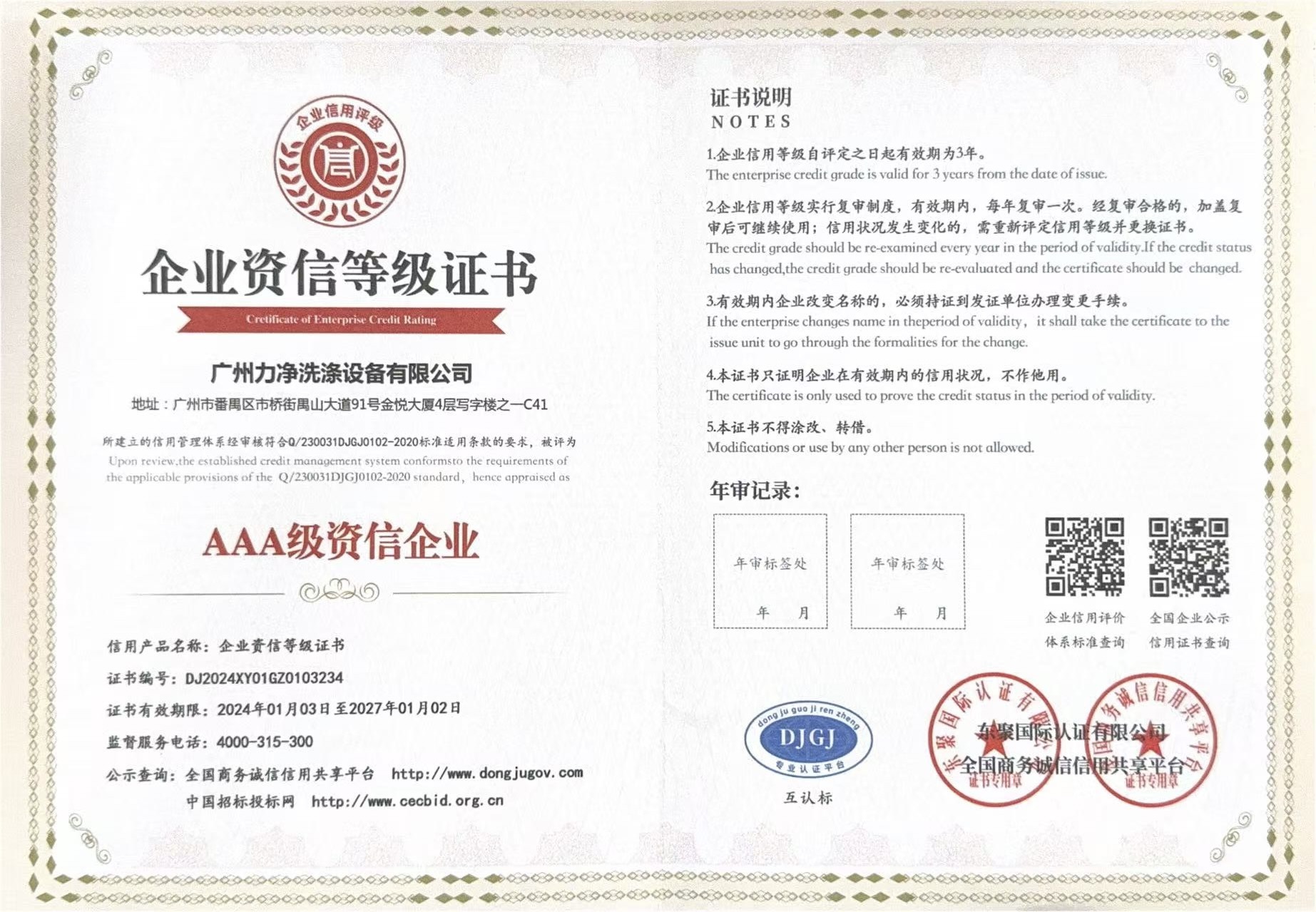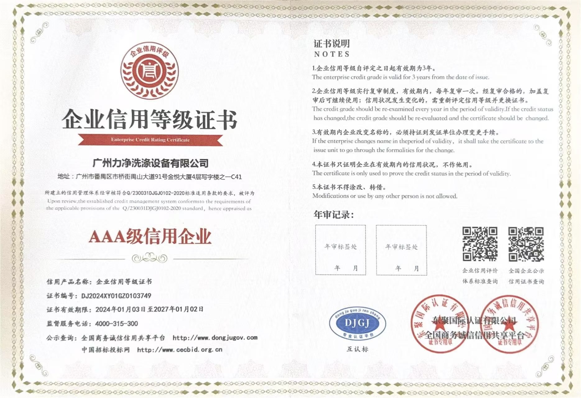 • AAA級(jí)重質(zhì)量守信用單位
