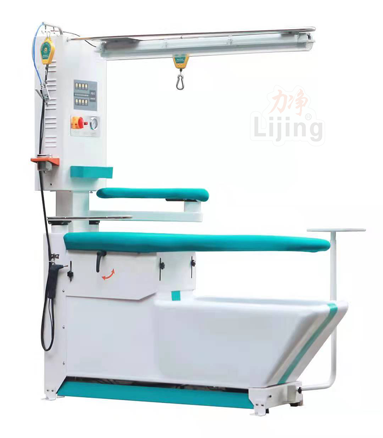 配有冷熱去漬槍和不銹鋼去漬臺(tái)面,在熨燙過(guò)程中,可隨時(shí)進(jìn)行去漬處理,提高功效、方便快捷。